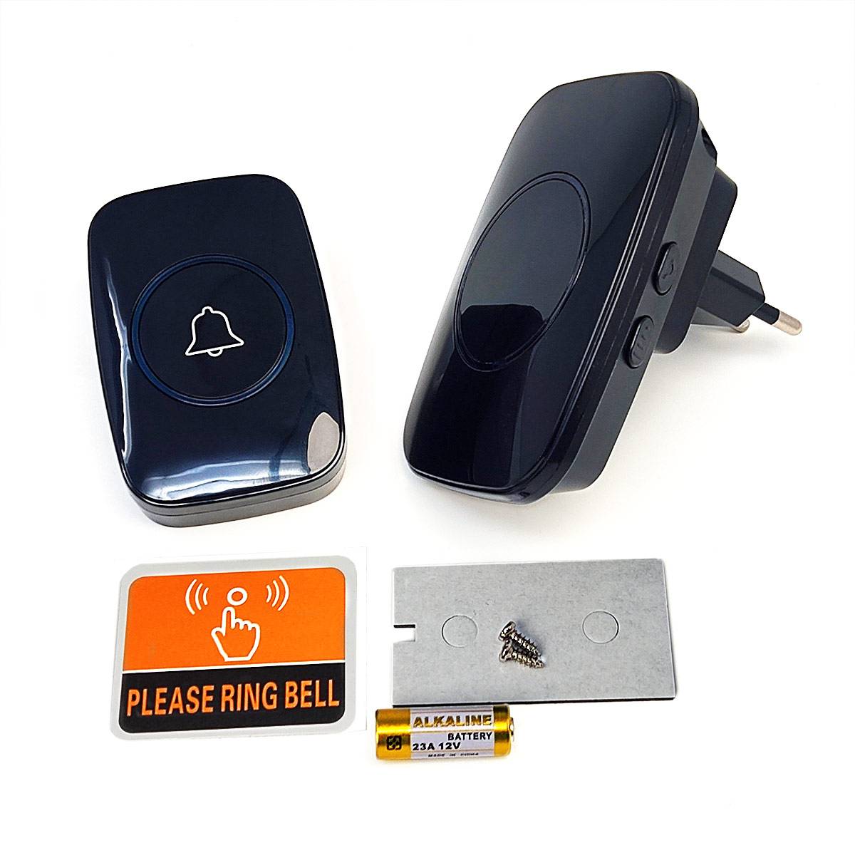 🔔【Kit complet avec pile incluse】Le kit comprend la carillon sur prise murale (française), le bouton d'appel avec une batterie 12V 23A longue durée ainsi que ses accessoires d'installations.